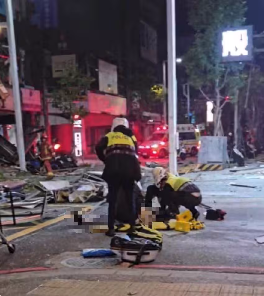 當時路過的女子4人、男子1人遭碎片砸傷,在場還有人慘遭炸出的碎片「擊倒」,躺在地上被緊急救治,現場一時宛如戰場。