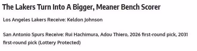 首先需要承認的是因為東契奇、詹姆斯的存在,湖人26年的首輪交易價值不大,但問題是終歸是首輪。我的意思是,利用好的話也是可以吃「新秀合同」福利的。