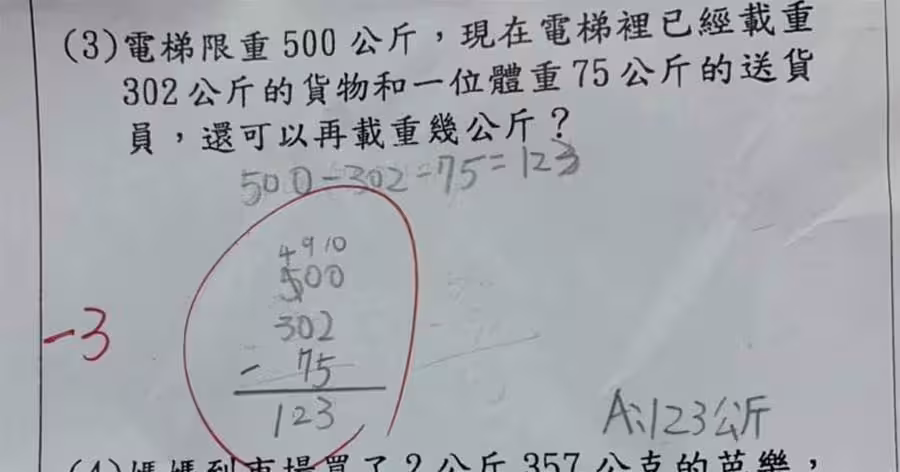 網友們熱議這個問題,解釋說這是因為在直式計算中,「減法不能連減」,正確的寫法應該是「500-(302+75)」。