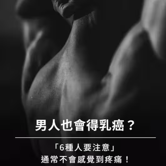 男人也會得乳癌?「6種人要注意」醫曝6症狀通常無痛