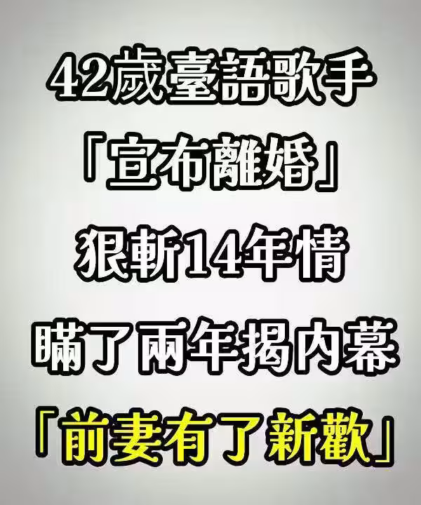快訊 / 42歲台語歌手 「宣布離婚」!
