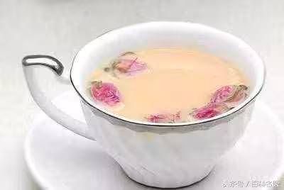 製法:將紅茶與玫瑰花一同放入茶壺中,用開水沖泡,倒入牛奶,待溫後調入蜂蜜即可。