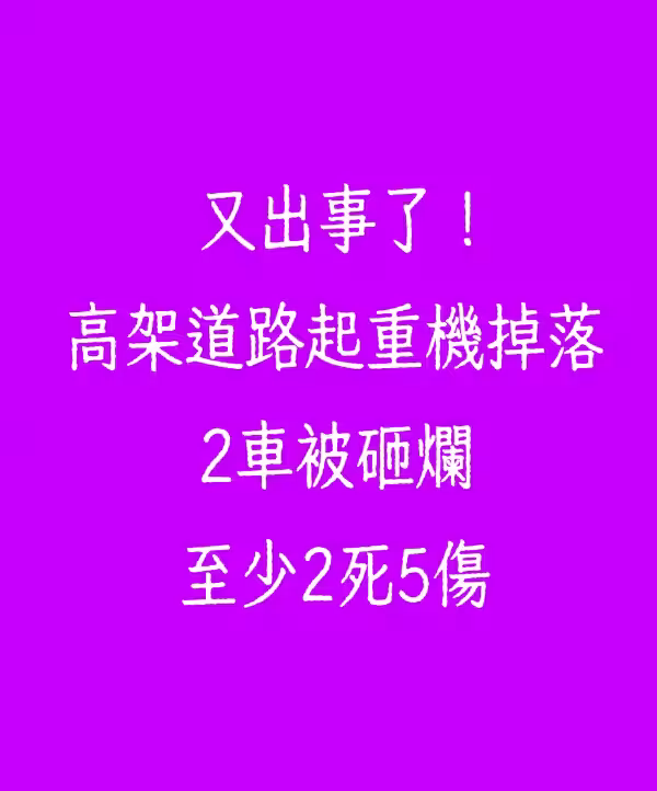 快訊/又出事了!高架道路起重機掉落 2車被砸爛至少2死5傷!