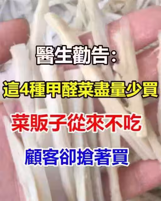 以下三種在市場上常見的「甲醛菜」,尤其在春季更需警惕,醫生提醒消費者儘量避免購買,菜販子自己都不吃,不是沒有道理。