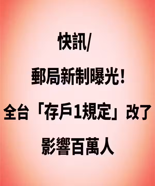 快訊 / 郵局新制曝光!全台「存戶一規定」改了,影響百萬人!