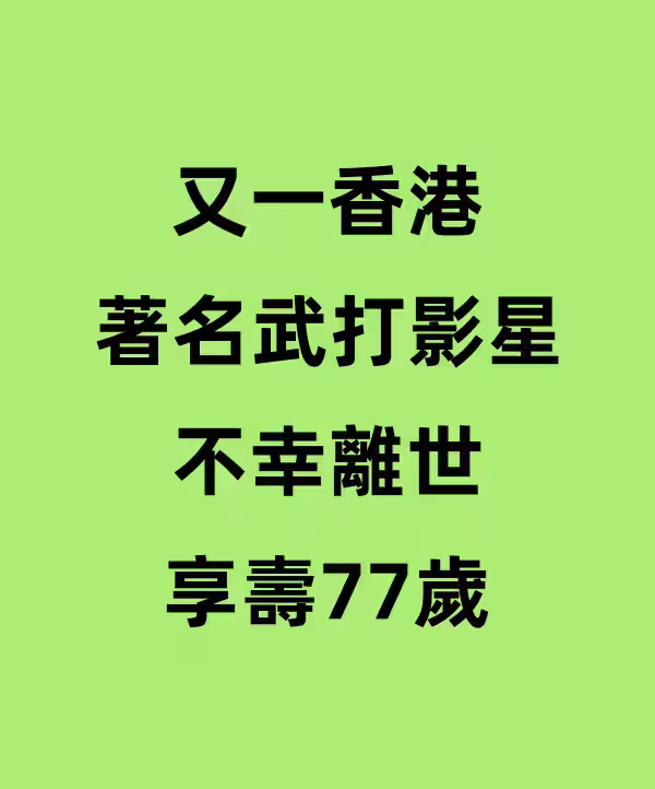 又一香港著名武打影星不幸離世,享壽77歲!