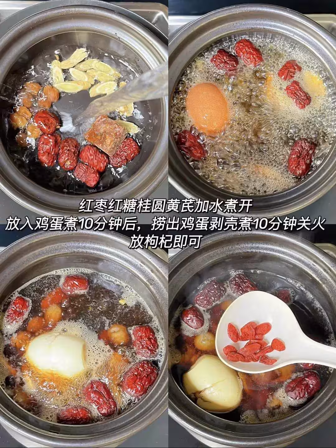 紅糖補血,黃芪補氣,雞蛋補充營養,搭配起來特別溫和。