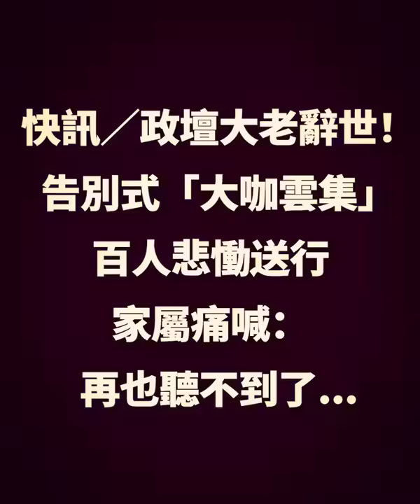 快訊/政壇大老辭世 「告別式大咖雲集」百人悲慟送行,家屬痛喊: 再也聽不到了