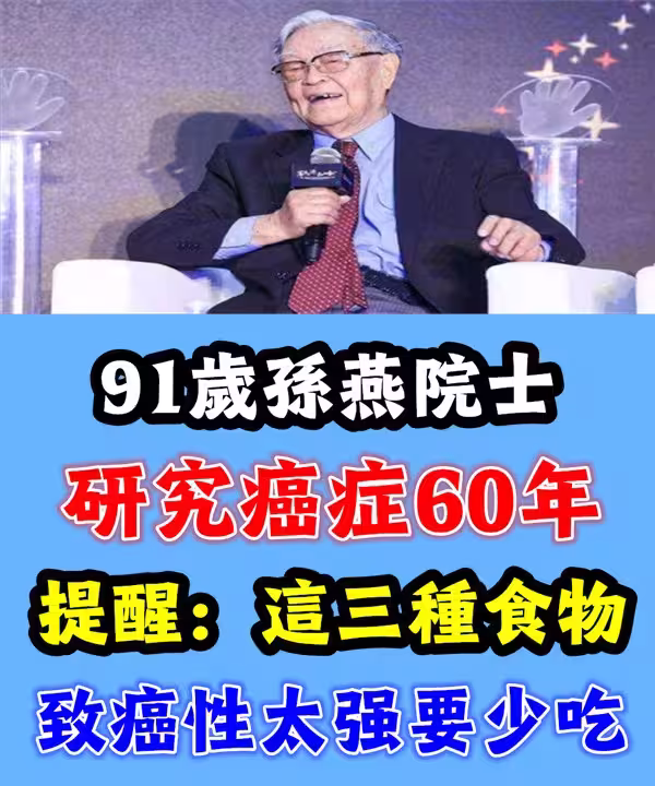 91歲孫燕院士,研究癌症60年,提醒:三種食物致癌性太強, 要少吃