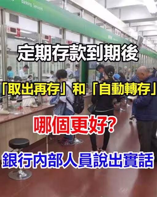 定期存款到期後,「取出再存」和「自動轉存」哪個更好!銀行內部人員說出實話