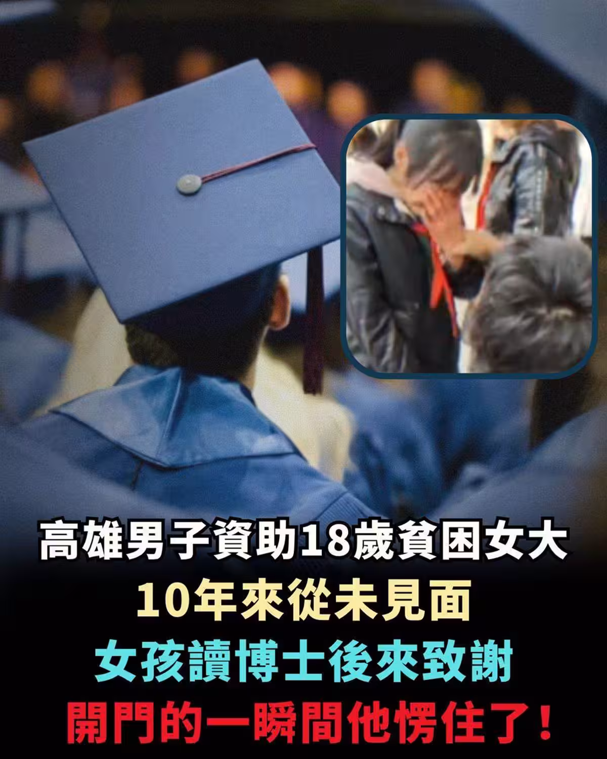 高雄男子資助18歲貧困女大, 十年來從未見面, 女孩讀博士後來致謝, 開門的一瞬間他愣住了!!!
