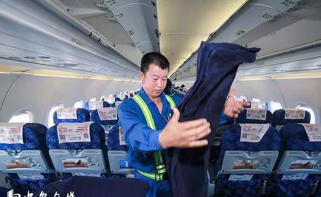 再往後,飛機完成一段時間的行程,再上來的遊客,拿到的就是別人使用過的毛毯了。