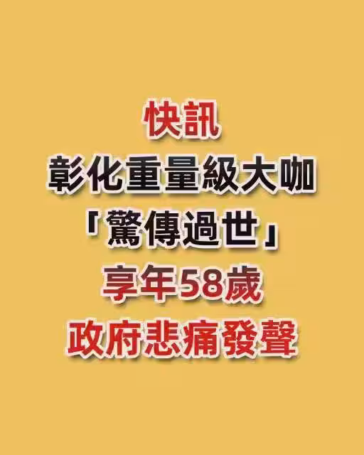 快訊/ 彰化重量級大咖「驚傳過世」享年58歲 政府悲痛發聲!