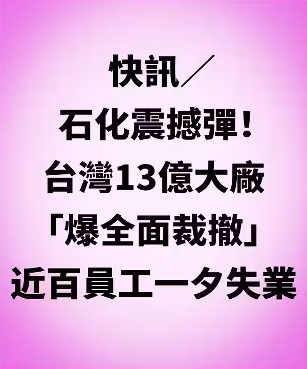 快訊/石化震撼彈!台灣13億大廠「爆全面裁撤」近百員工一夕失業!