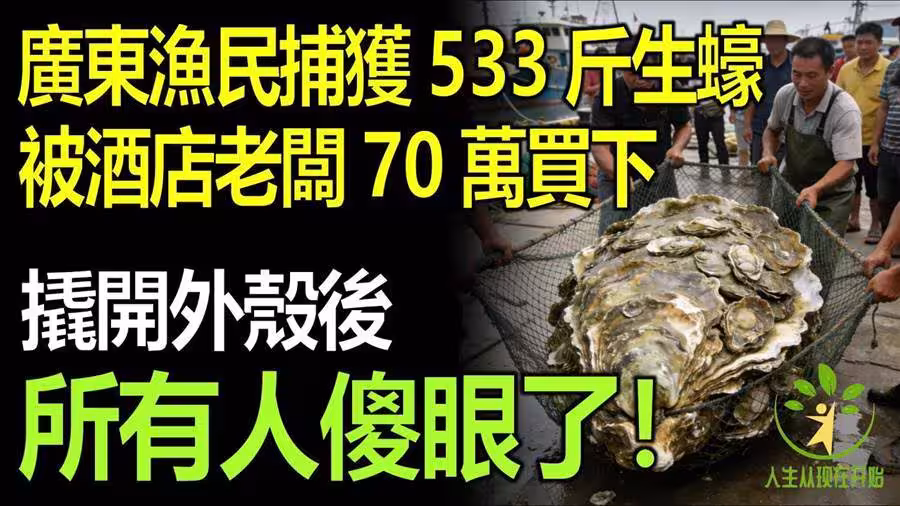 廣東漁民捕獲533斤生蚝,被酒店老闆當場70萬買下,撬開外殼後,所有人傻眼了!