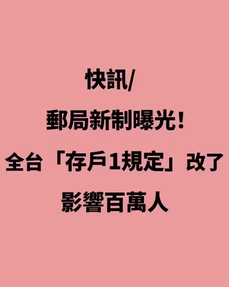 快訊 / 郵局新制曝光!!全台「存戶1規定」改了,影響百萬人
