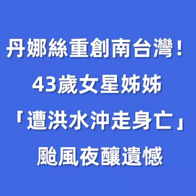 丹娜絲重創南台灣!43歲女星姐姐「遭洪水沖走身亡」颱風夜釀遺憾