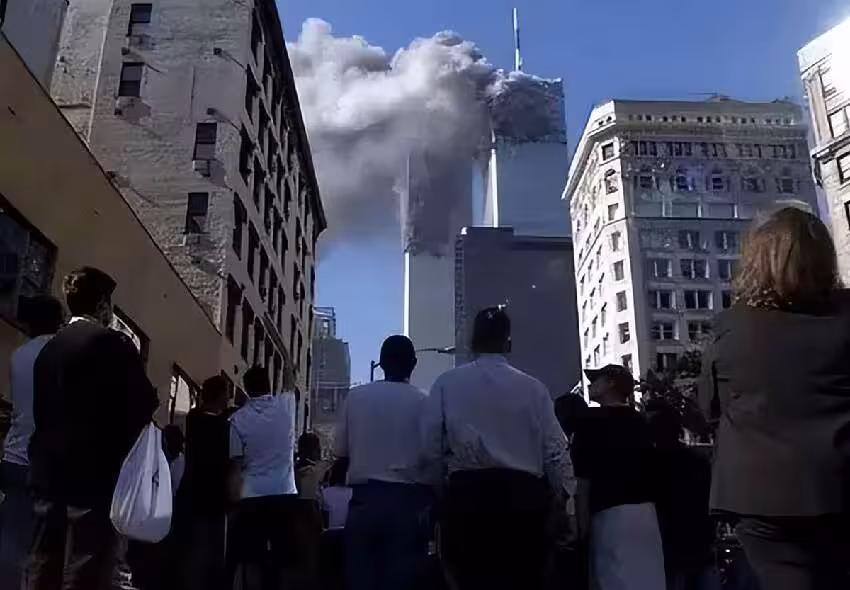 2001年9月11日上午8點46分,劫機者控制飛機故意撞上了美國世貿中心北塔。