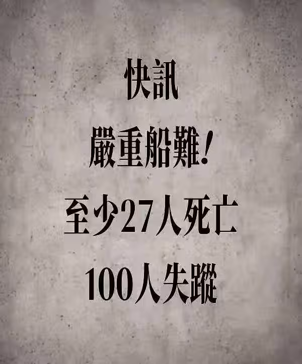 快訊/嚴重船難 至少27人死亡、100人失蹤……