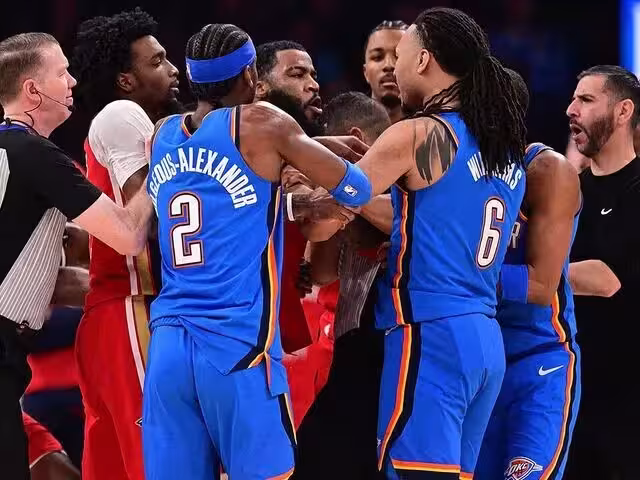 由於約基奇至少再休戰一周,本賽季缺席場次將超過17場,無緣常規賽各大獎項評選。這樣一來,亞歷山大成為MVP的最大熱門。目前雷霆38勝10負繼續排名聯盟第一,領先東部第一的活塞2.5個勝場,領先西部第二的馬刺6個勝場。