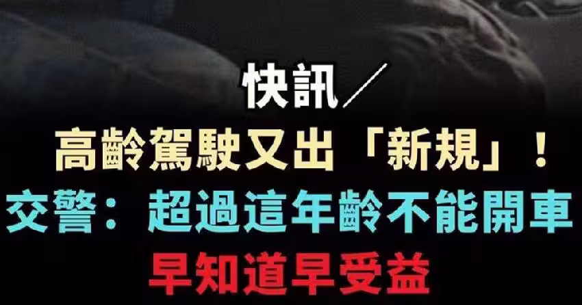 快訊/ 高齡駕駛又出「新規」! 交警:超過這年齡不能開車,早知道早受益