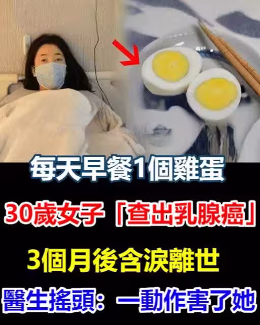 每天早餐1個雞蛋,30歲女子「查出乳腺癌」3個月後含淚離世,醫生搖頭:一動作害了她