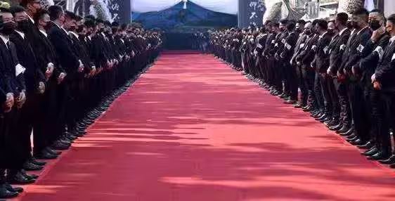 出殯的陣仗自然也「風光無限」:現場有從台北運來的百萬奔馳靈車,南部樂隊電子花車的哀樂震天響起,全黑西裝的小弟浩浩蕩蕩整條街,陣容炫目如皇家禮儀。