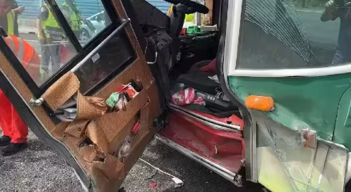 從事故詳情來看,在車禍首次撞擊時,駕駛並沒能馬上辨識周邊車況、其他車輛位置,且又因過度右轉而導致車身朝左傾斜,車頭也以45度向外側車道偏移,造成小客車遭受擠壓、撞擊。