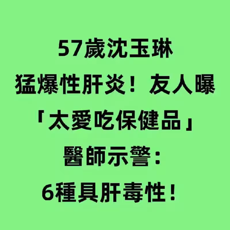 57歲沈玉琳猛爆性肝炎! 友人曝「太愛吃保健品」醫師示警:6種具肝毒性 驚傳知名藝人沈玉琳因為身體狀況不佳住進加護病房,引發各界關注。