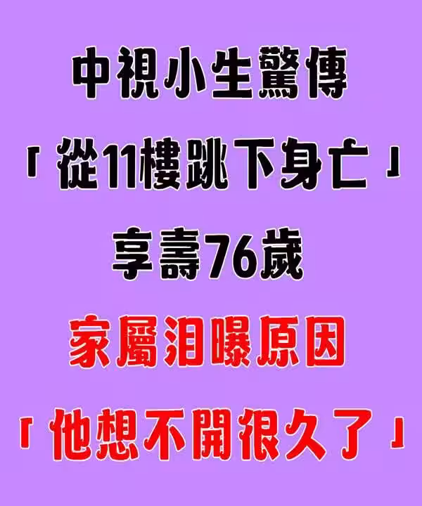 中視小生驚傳「從11樓跳下身亡」 享壽76歲