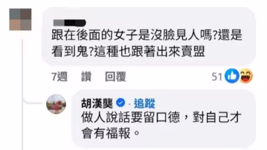 胡漢齲霸氣回擊:做人要留口德