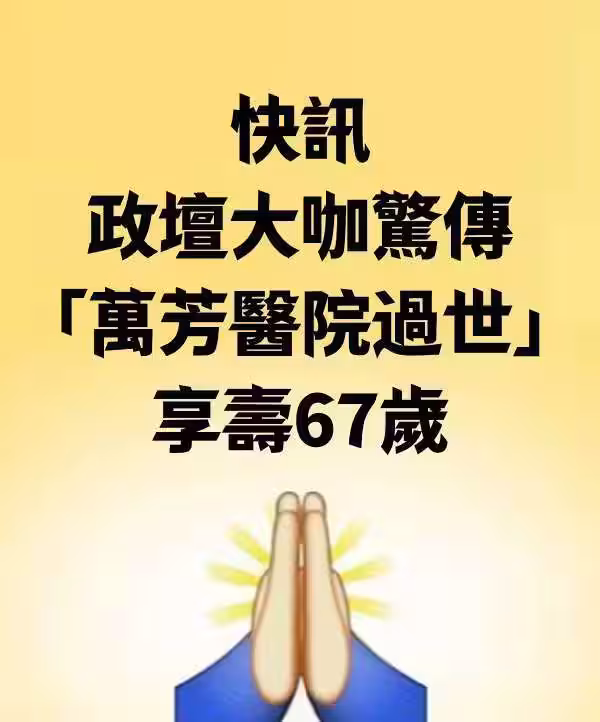 快訊/政壇大咖驚傳「萬芳醫院過世」享壽67歲