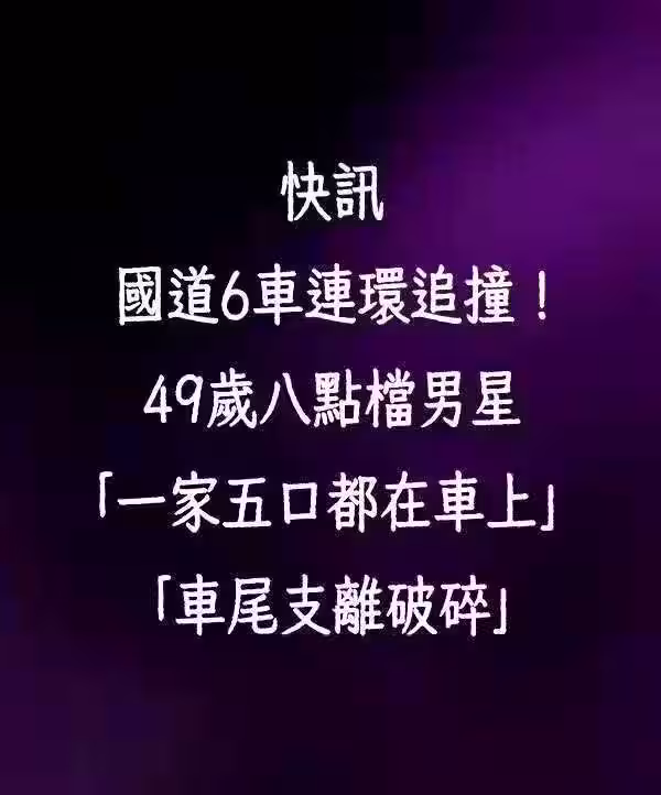 快訊/國道6車連環追撞!49歲八點檔男星「一家五口都在車上」 「車尾支離破碎」 驚險過程曝…