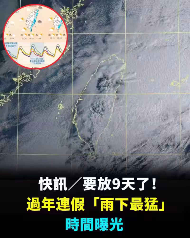 快訊/要放9天了!過年連假「雨下最猛」時間曝光