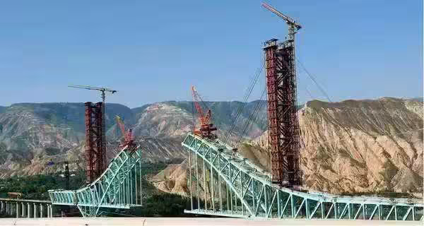 這座興建中的大橋為世界跨度最大的雙線鐵路連續鋼桁拱橋,同時也創下大陸首座跨越黃河的鐵路鋼桁拱橋紀錄。