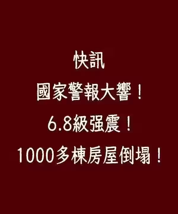快訊/ 國家警報大響!6.8級強震! 逾千棟房屋倒塌!