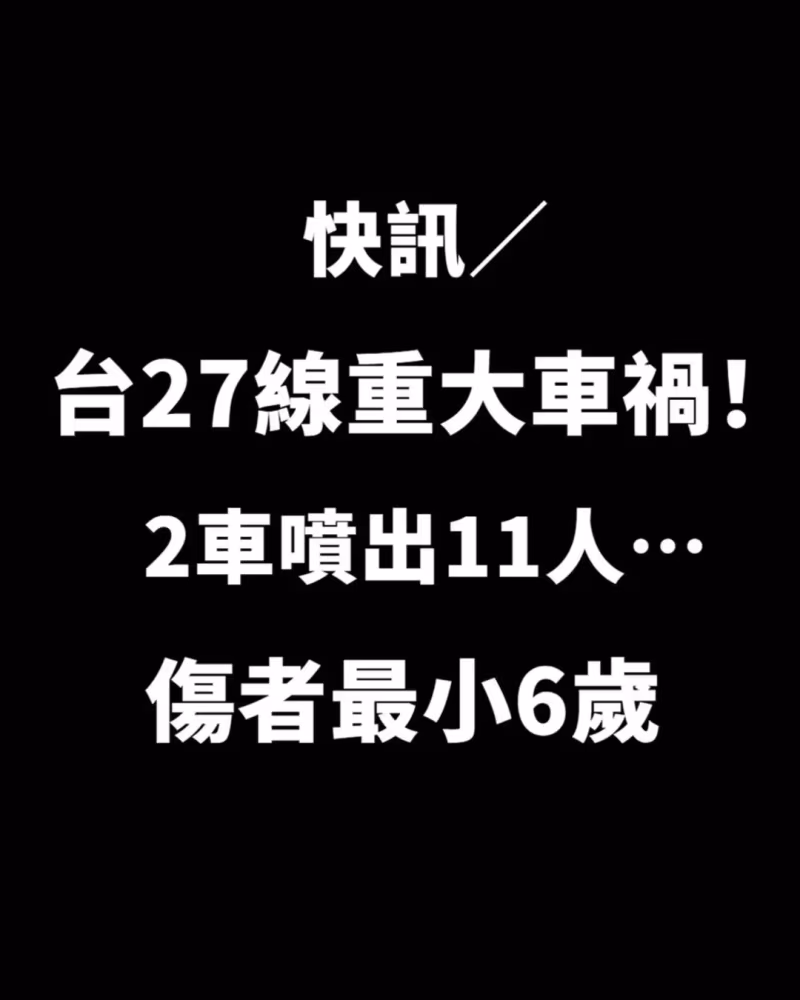 快訊/台27線重大交通事故!2車噴出11人…傷者最小6歲