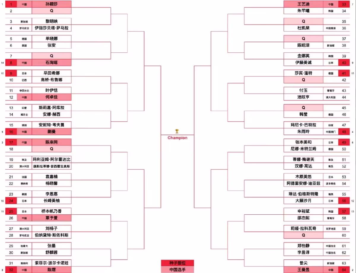 國乒女單9人、男單8人參賽,目前正賽簽表已經出爐,孫穎莎首輪對手還沒有確定,需要等待明天資格賽結束後才揭曉。
