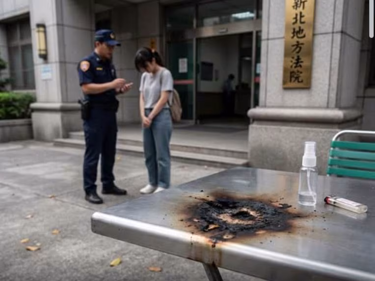 新北地方法院,昨天晚上7時30分發生縱火案, 20歲蔣女陪涉嫌詐騙遭通緝的男友前往開庭,