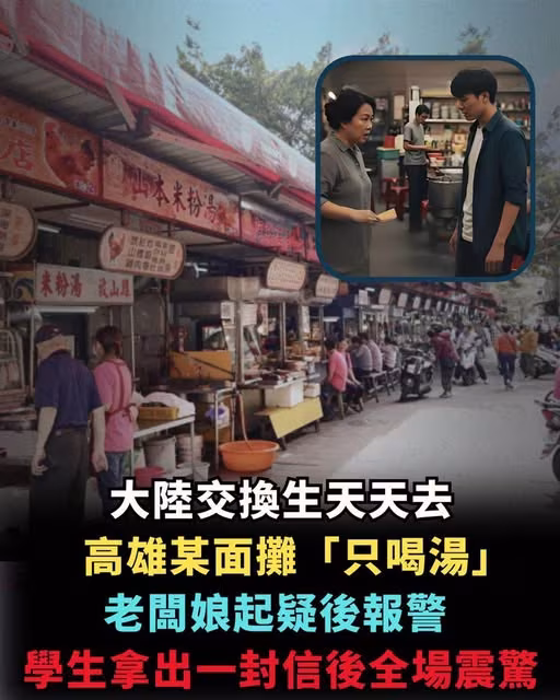 大陸交換生天天去高雄某麵攤「只喝湯」老闆娘起疑後報警,學生拿出一封信後全場震驚