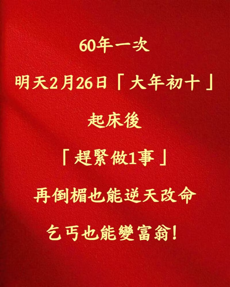 60年才一次,就在明天!!2月26日「大年初十」起床後「趕緊去做這兩件事情」再倒楣也能逆天改命,乞丐也能變富翁!