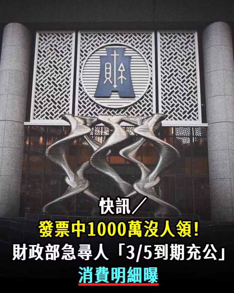 快訊/發票中1000萬沒人領!3/5到期財政部急尋人,消費明細曝