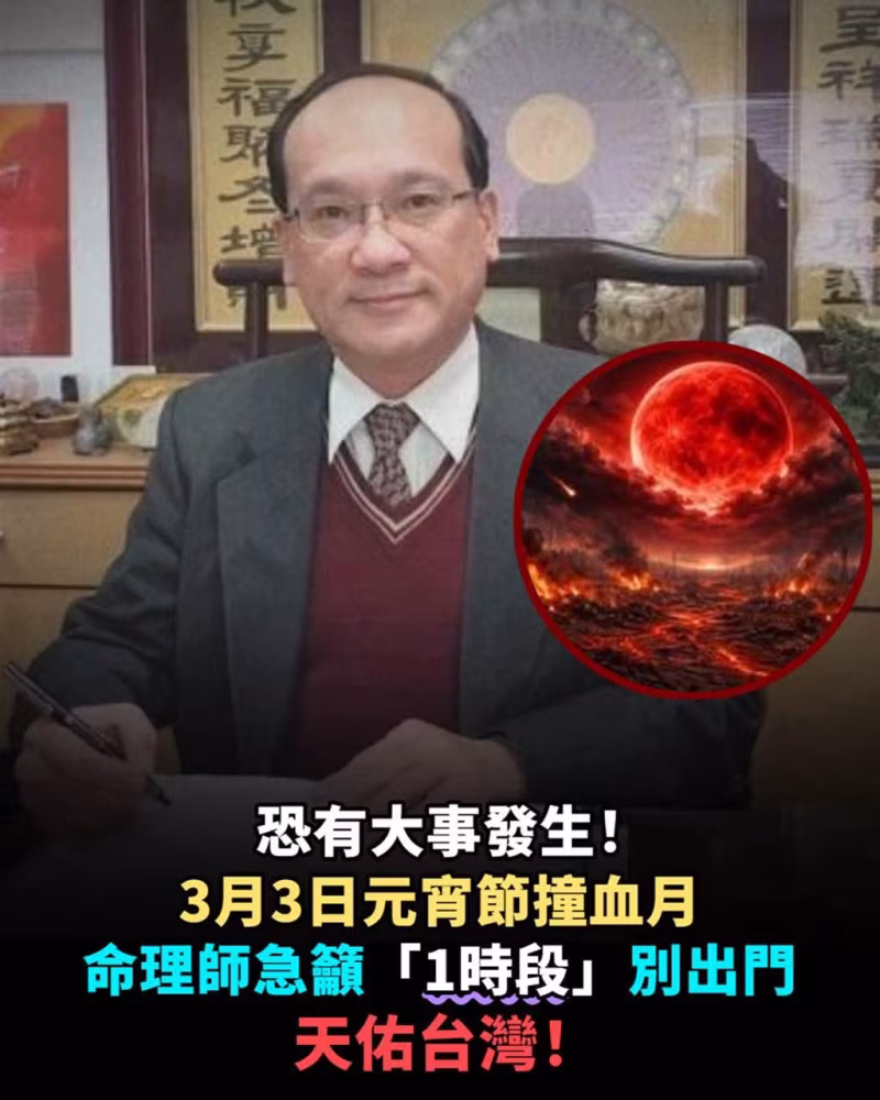 有大事發生!!3月3日元宵節撞血月,命理師急吁「1時段」別出門,天佑台灣!
