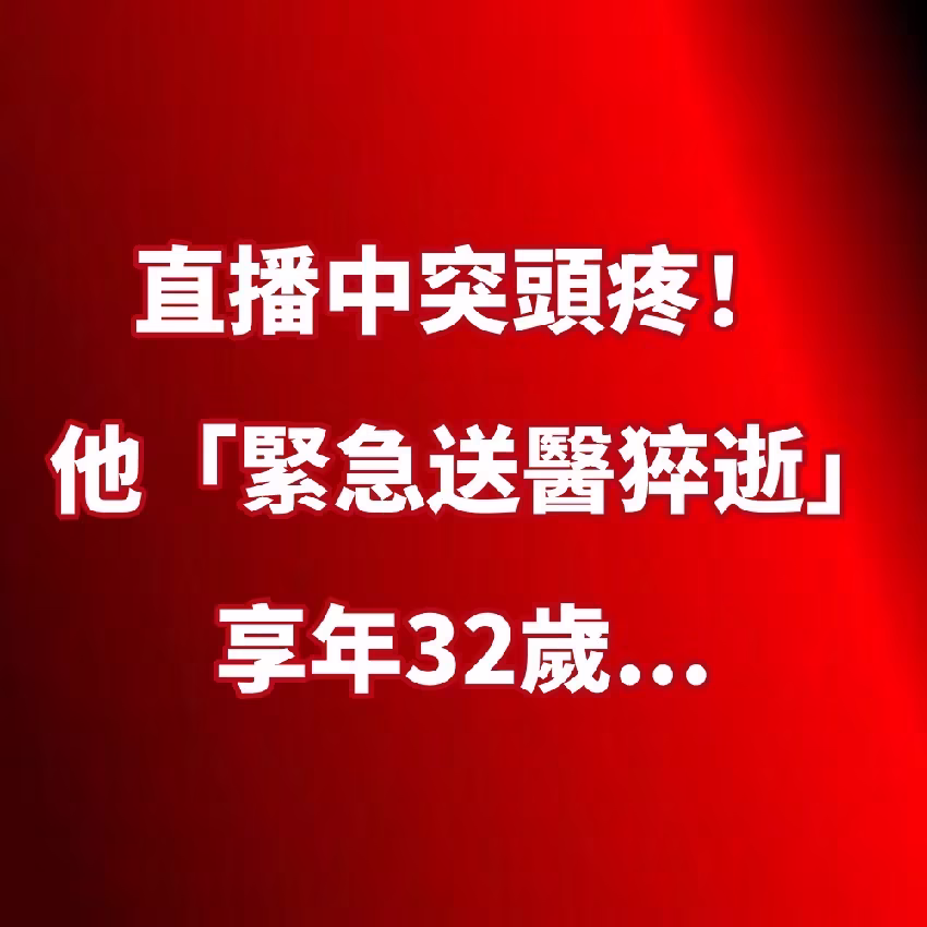 直播中突頭疼!!! 他「緊急送醫猝逝」享年32歲...