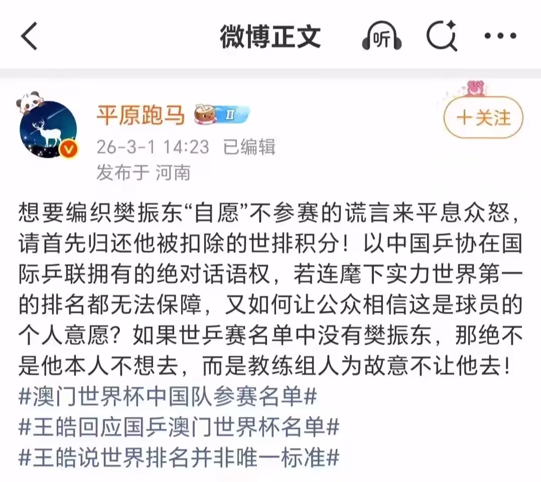 如果是自己想歇歇,為什麼不能明說?如果想淡出,為什麼不能給個交代?非得讓大家猜來猜去,猜到最後全是陰謀論。樊振東今年才28,技術心態都在巔峰,是接班馬龍的那個人。這樣一個運動員,如果真是被內部逼退的,那不光是國乒的損失,是整個中國體育的損失。