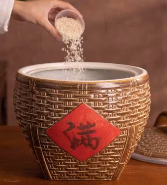 早上:將米缸添滿,放入裝有吉祥金額的紅包袋,貼上「富」字。