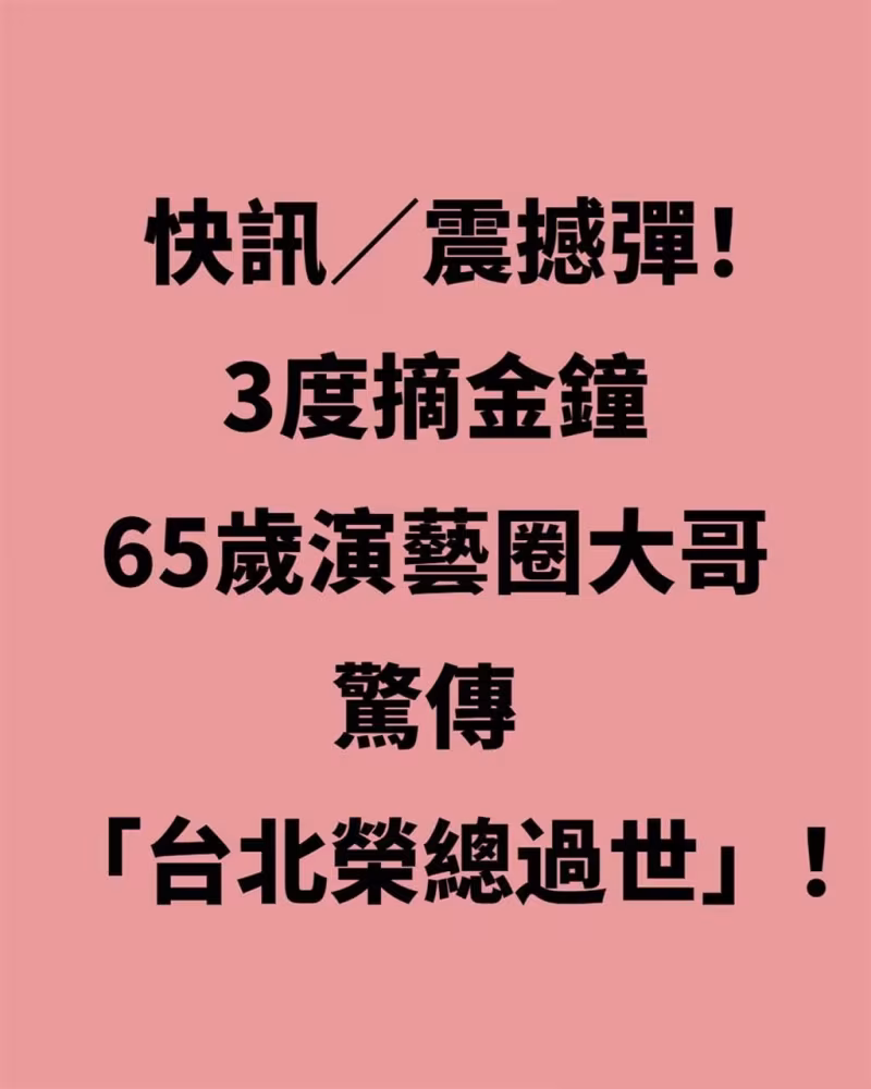 快訊/三度摘下金鐘!!65歲演藝圈大哥驚傳「台北榮總過世」!