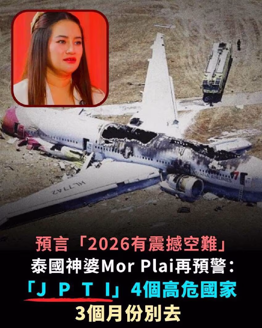 預示「2026有震撼空難」!泰國神婆Mor Plai再預警:「J、P、T、I」4個高危險國家+3月份去別