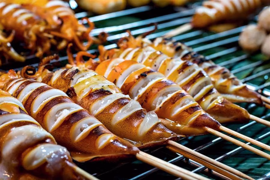 許多人到夜市最喜歡吃烤魷魚或花枝腳,但因為海鮮較容易變質,若沒有放在冰箱冷藏,就容易孳生細菌!因此在購買前,最好注意一下攤販衛生環境。