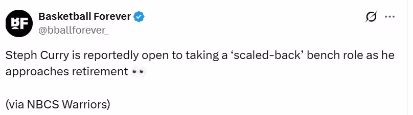庫里短期內並沒有退役的計劃,他依然處在精英水準。但當他的狀態真的開始下滑(他今年37歲),庫里不會固執地死守主力位置。相反,他會接受球隊里更次要的角色,努力以替補身份繼續發揮作用。幸運的是,他的打法幾乎不受年齡限制,他的投籃永遠具備價值。